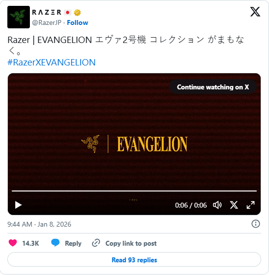 Thương hiệu anime đình đám Neon Genesis Evangelion đã có không ít lần bắt tay hợp tác với thế giới công nghệ trong vài năm gần đây, và giờ đây Razer cũng đang bật mí về một cú bắt tay mới với IP này. Dù chưa có nhiều thông tin cụ thể, nhưng teaser ngắn ngủi đã cho thấy Razer sẽ khai thác sâu ngôn ngữ hình ảnh đặc trưng của Evangelion cho màn collab sắp tới.