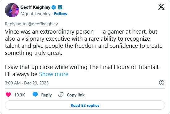 Ảnh hưởng của Zampella đối với ngành game là rất lớn, với vô số lời chia buồn và kỷ niệm được cộng đồng game thủ chia sẻ trên mạng xã hội. Dưới đây là một số lời tri ân đáng nhớ.