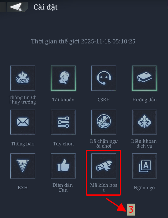 Để nhập Giftcode, Chỉ Huy hãy thao tác theo các bước sau nhé
