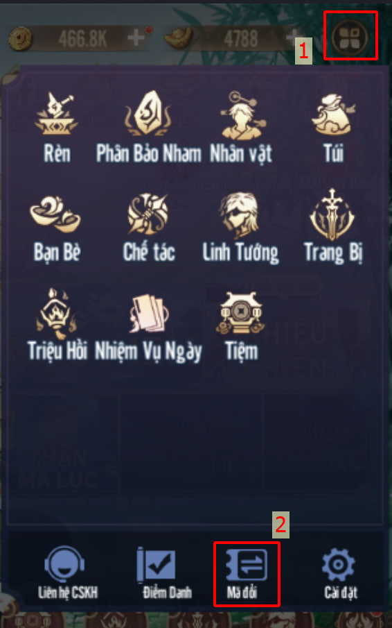 Để nhập Giftcode, Linh Tướng hãy thao tác theo các bước sau nhé