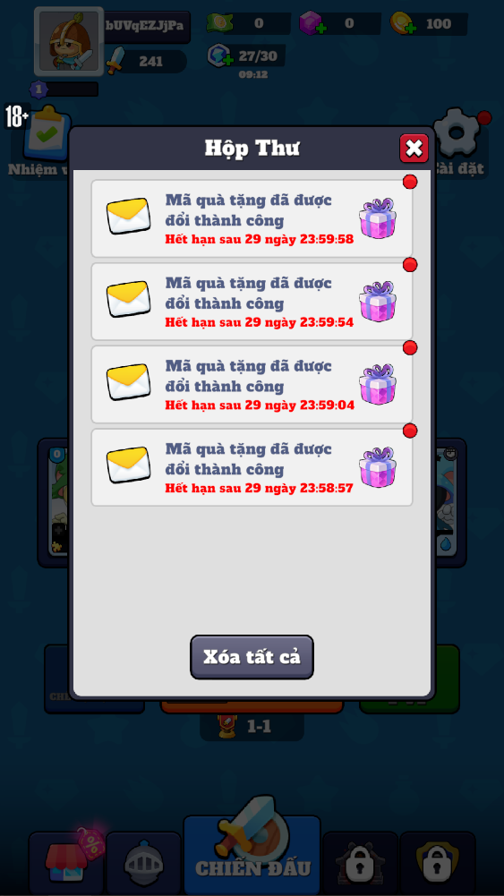 Bước 3: Sau khi nhập code thông báo Nhập mã thành công là đã nhận quà thành công.
