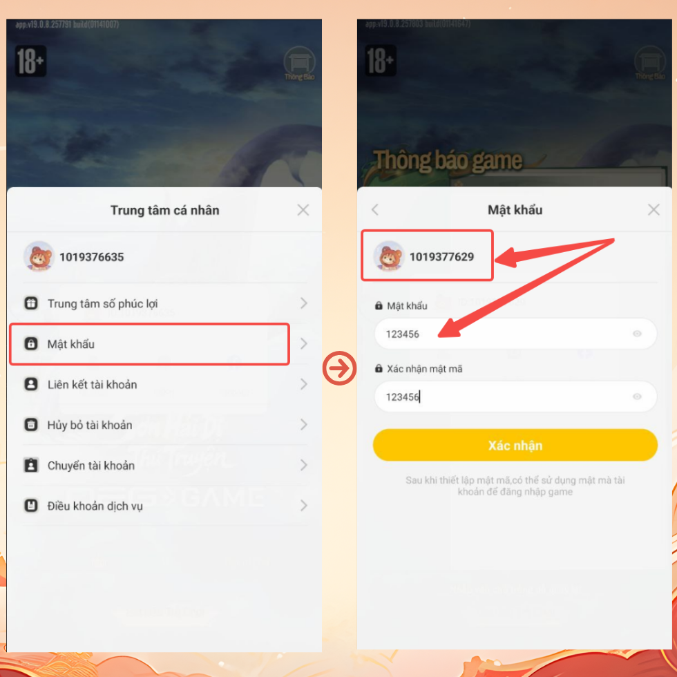 Sau khi đặt mật khẩu thành công, Ngự Linh Sư có thể sử dụng mã ID tài khoản và mật khẩu đã đặt để vào game.
