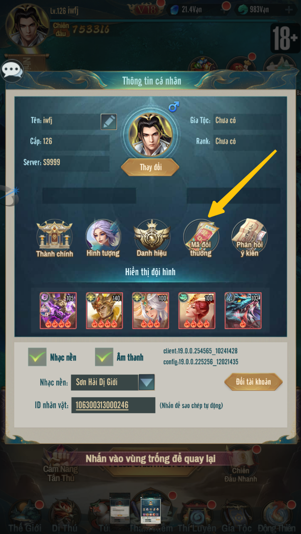 Để nhập mã quà tặng, huynh/tỷ thao tác trong game như sau: