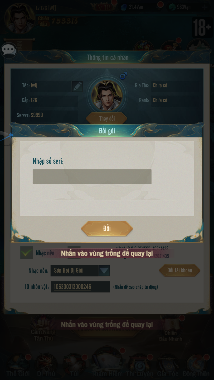Bước 2: Nhập chính xác mã Code —> ĐỔI