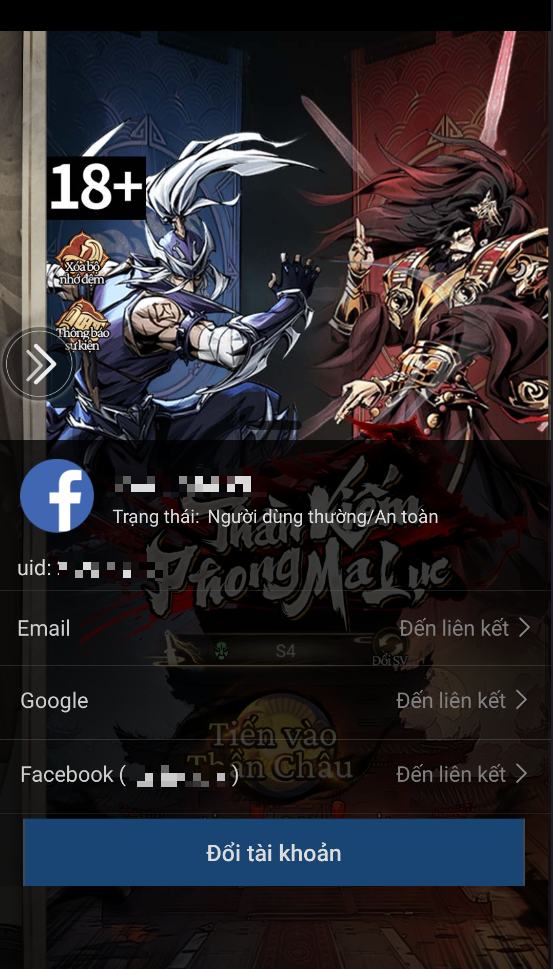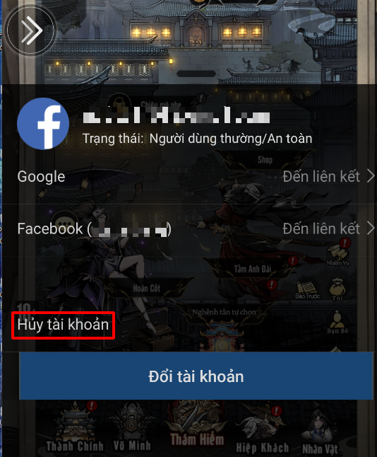 Hiệp Khách cũng có thể tự động ấn hủy liên kết với Google/Facebook sau khi đã liên kết với 1 phương thức khác và liên kết Google/Facebook lại nếu muốn