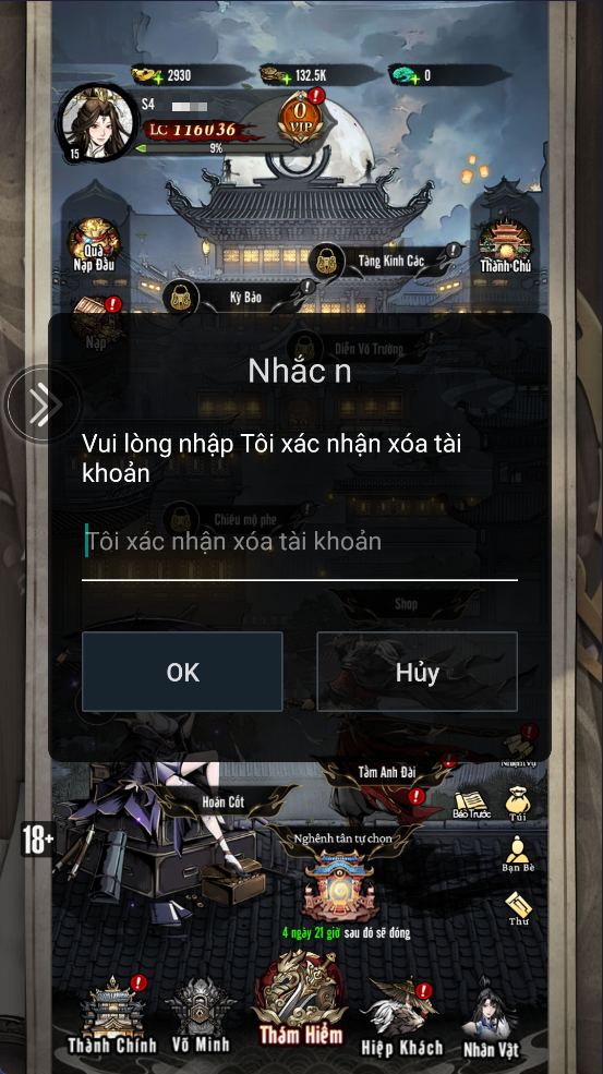 Sau khi qua 2 bước xác nhận/nhắc nhở như dưới thì tài khoản của Hiệp Khách chính thức bị xóa vĩnh viễn, không thể khôi phục, nên Hiệp Khách hãy suy nghĩ kỹ lưỡng trước khi lựa chọn nhé