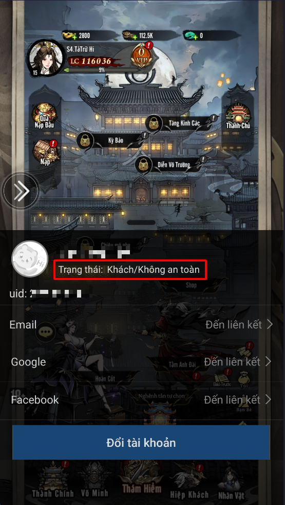 Nếu tài khoản Facebook/Google bị khóa hoặc mất quyền truy cập, Hiệp Khách có thể mất luôn quyền đăng nhập vào game nếu chưa liên kết thêm với phương thức nào khác