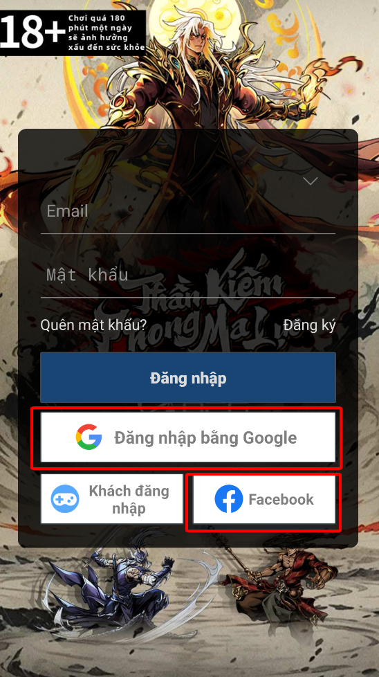 C, Đăng nhập tài khoản Facebook/Google