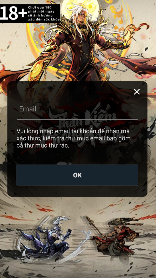 Hiệp Khách hãy đảm bảo nhập chính xác Email kết nối, trường hợp Hiệp Khách gặp sự cố khi đăng nhập, có thể dùng Email để khôi phục và đăng nhập lại vào game.