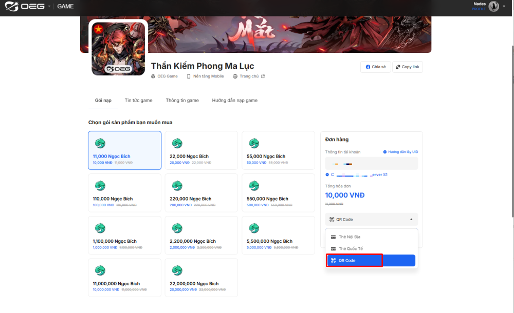 Bước 1: Truy cập vào Kênh nạp chính thức của OEG tại: LINK và đăng nhập