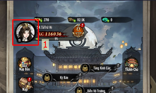 B1: Chọn avatar nhân vật trên góc trái màn hình