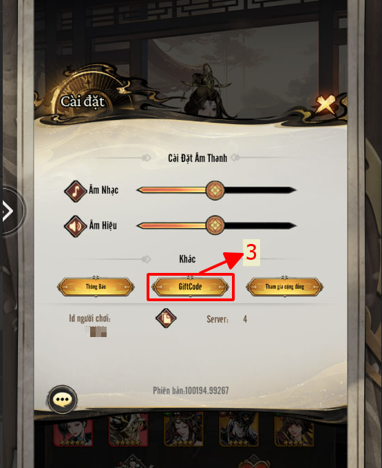 B3: Chọn mục “Giftcode”