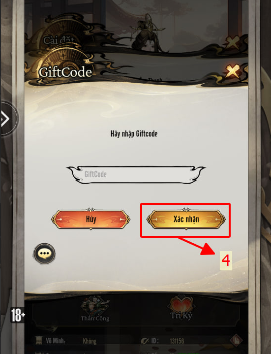 B4: Nhập Giftcode và Ấn “Xác Nhận”