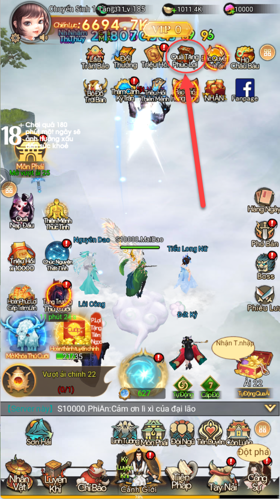 Tiên Hữu chọn “Quà Tặng Phúc Lợi” trên thanh tính năng