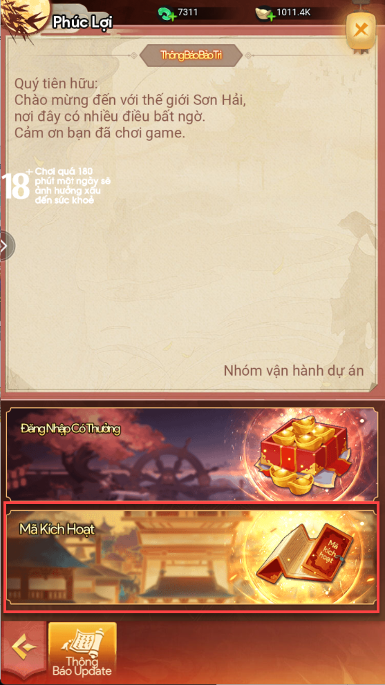 📌 Lưu ý: Nếu gặp phải vấn đề gì khi nhập Giftcode, Tiên Hữu hãy liên hệ với bộ phận CSKH để được hỗ trợ ngay nhé!