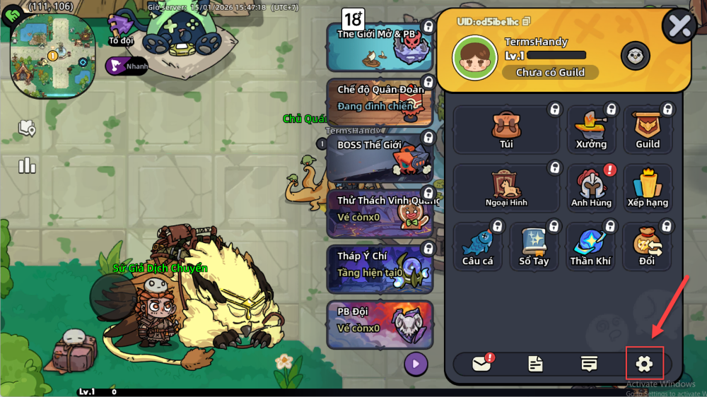 Anh Hùng hãy thao tác theo các bước sau để nhập Giftcode nhé