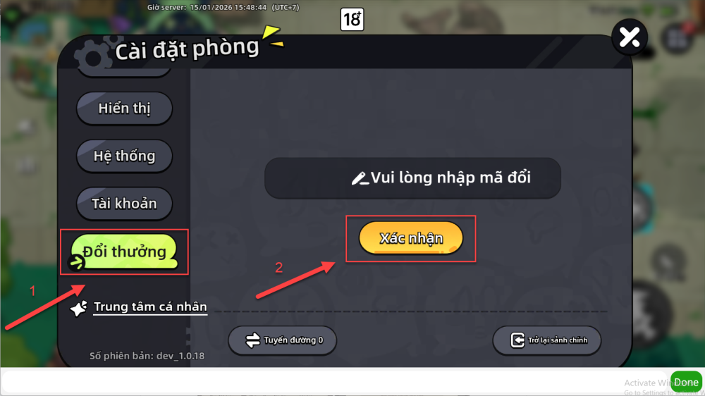 Chọn “Đổi thưởng” -> Nhập Giftcode -> Xác nhận